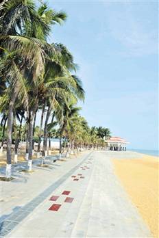 在假日海灘景區(qū)看到,新修復(fù)的海岸線設(shè)施一改過去破舊、狹窄和進(jìn)出海灘不便的設(shè)計(jì),以寬敞、開放、新潮的形象出現(xiàn)在游人面前,一座新建成的紅頂涼亭格外醒目。??诩偃蘸┕芾砉距嵖偨榻B,假日海灘及印象劇場海岸線設(shè)施災(zāi)后應(yīng)急修復(fù)工程東起印象劇場東側(cè)滑輪籬笆處,西至假日海灘與貴族游艇會交界排水溝,全長1.33公里,總投資2482.92萬元。