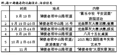 中秋、國(guó)慶雙節(jié)將至,您不妨?xí)簳r(shí)放下手中的冗事,約上三五知心好友,或帶上家人,到海口騎樓老街走走、看看、坐坐……重新體驗(yàn)一番老??诘纳睿惺芤话演p松和閑適,把裝滿的心情清空,何樂(lè)而不為?