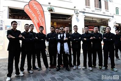 這次活動由海南天涯騎驢發(fā)起,俱樂部嚴(yán)春江會長說:“復(fù)古騎行宣揚的不僅是一種服裝上的品味和愛好,還是一種生活方式?,F(xiàn)代人的生活節(jié)奏快,生活方式也不盡環(huán)保,著裝上也越來越缺乏含蓄和經(jīng)典的美感。我們希望用復(fù)古騎行的方式傳達(dá)愛護(hù)家園、倡導(dǎo)低碳生活理念,同時也向那個大街小巷遍布自行車的美好年代致敬。”上午十一點嚴(yán)會長已經(jīng)開始在現(xiàn)場指導(dǎo),??诒镜貢姨氐貫榇嘶顒宇}字。