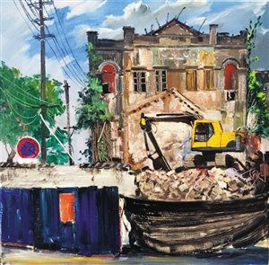 近年來,張建舉畫作中的??隍T樓有時是在唯美的煙雨朦朧中,有時是在陽光刺眼的照耀下,記錄下的或是殘垣斷壁的一角,或是富有浪漫氣息的“現代城堡”……“海口騎樓的一磚一瓦,一柱一梁,幾乎都收錄在了我的‘騎樓’印象中。”張建舉笑著說。