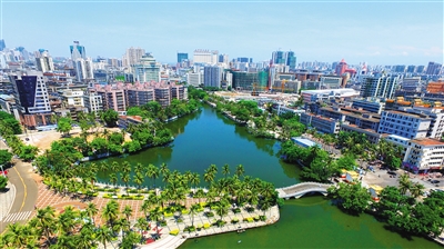 7月17日上午,打通后的海口西湖環(huán)湖道路,景觀更加迷人。