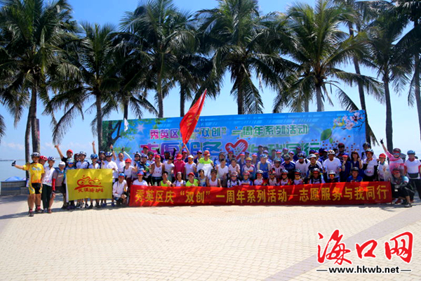 海口網(wǎng)7月24日消息(見習(xí)記者 陳奕霖)24日上午,海口“‘雙創(chuàng)’一周年志愿服務(wù)與我同行”活動在??谖骱0都偃蘸╅_啟,近300人參與以騎行、跑步、徒步等方式助力???ldquo;雙創(chuàng)”。