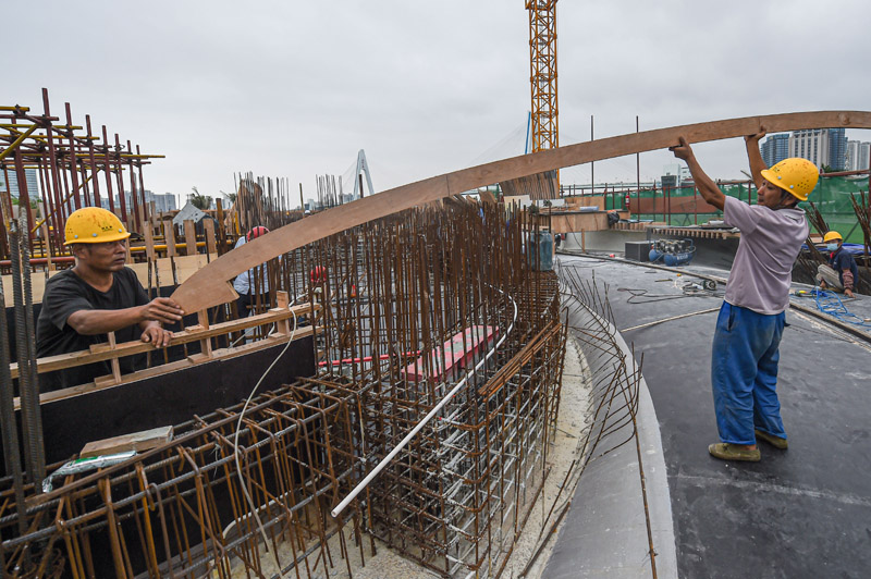 近日,在位于??谑泻?跒车脑贫磮D書館項目工地,工人們加緊施工。目前,該項目已進(jìn)入地上主體結(jié)構(gòu)施工階段。項目建成后,云洞圖書館將成為??跒硺?biāo)志性藝術(shù)建筑,并為市民、游客提供一處閱讀和休憩的場所。