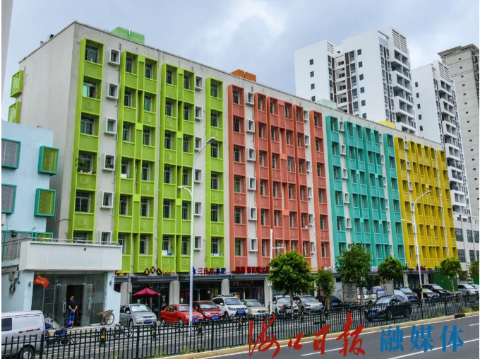 破敗的外墻經(jīng)過整體改造,披上嶄新的“外衣”;樓宇的防水、隔熱層等重新設計施工,破解多年的滲水難題;生銹殘破的窗戶、防盜網(wǎng),換上堅固耐用的新產(chǎn)品,規(guī)整后的空調(diào)機柜、廣告招牌層次鮮明,整潔美觀......在??谖拿鳀|路,樓齡超過20年的文龍大廈新貌讓人眼前一亮。