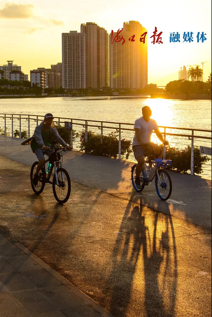 7月12日下午,市民游客悠閑地在海甸溪沿岸騎行,欣賞美景。
