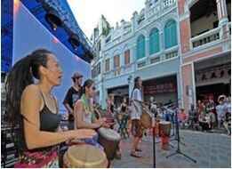 本屆藝術(shù)節(jié)延續(xù)了上屆具有先鋒、實驗、創(chuàng)新的國際藝術(shù)視覺展覽及當(dāng)代元素表演的呈現(xiàn),同時吸引了眾多國際創(chuàng)作、表演藝術(shù)家的加盟,極大地拓展、豐富了海口的藝術(shù)資源。與往屆相比,無論是在中山路中心舞臺不同語言、多種風(fēng)格的演唱、演奏,還是在旅游集散廣場露天播放的懷舊老電影,今年的藝術(shù)節(jié)更加受到老街居民的青睞,每天現(xiàn)場均座無虛席,氣氛熱烈。