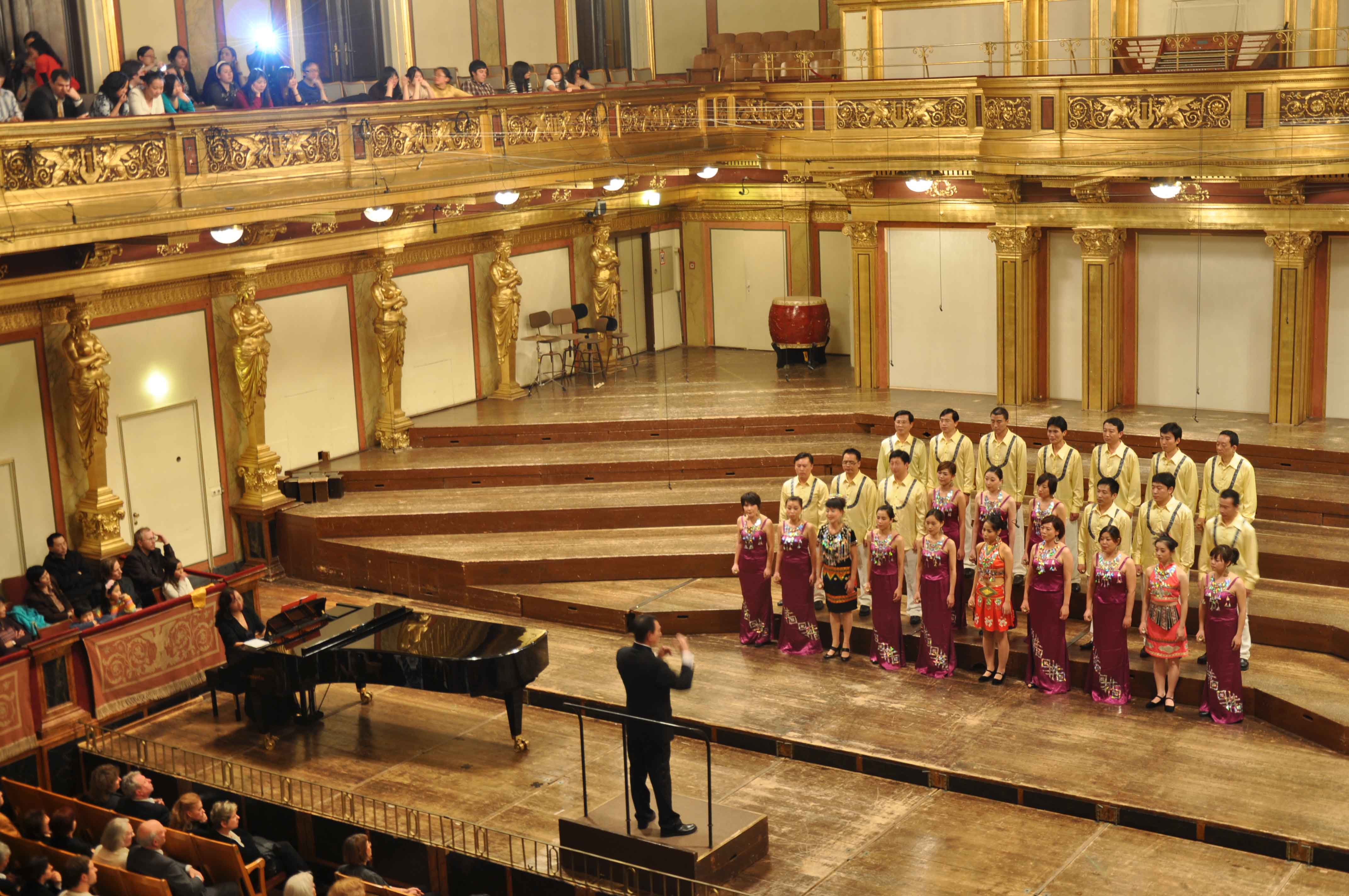 中奧建交40周年系列活動之“中奧建交40周年金色大廳慶典音樂會”于奧地利維也納當(dāng)?shù)貢r間2月10日晚19點在奧地利維也納金色大廳拉開帷幕,應(yīng)奧地利—中國關(guān)系促進(jìn)會邀請,海旅合唱團(tuán)作為海南唯一一支參演隊伍出席音樂會,在享譽(yù)世界盛名的維也納金色大廳放聲高唱海南話歌曲。