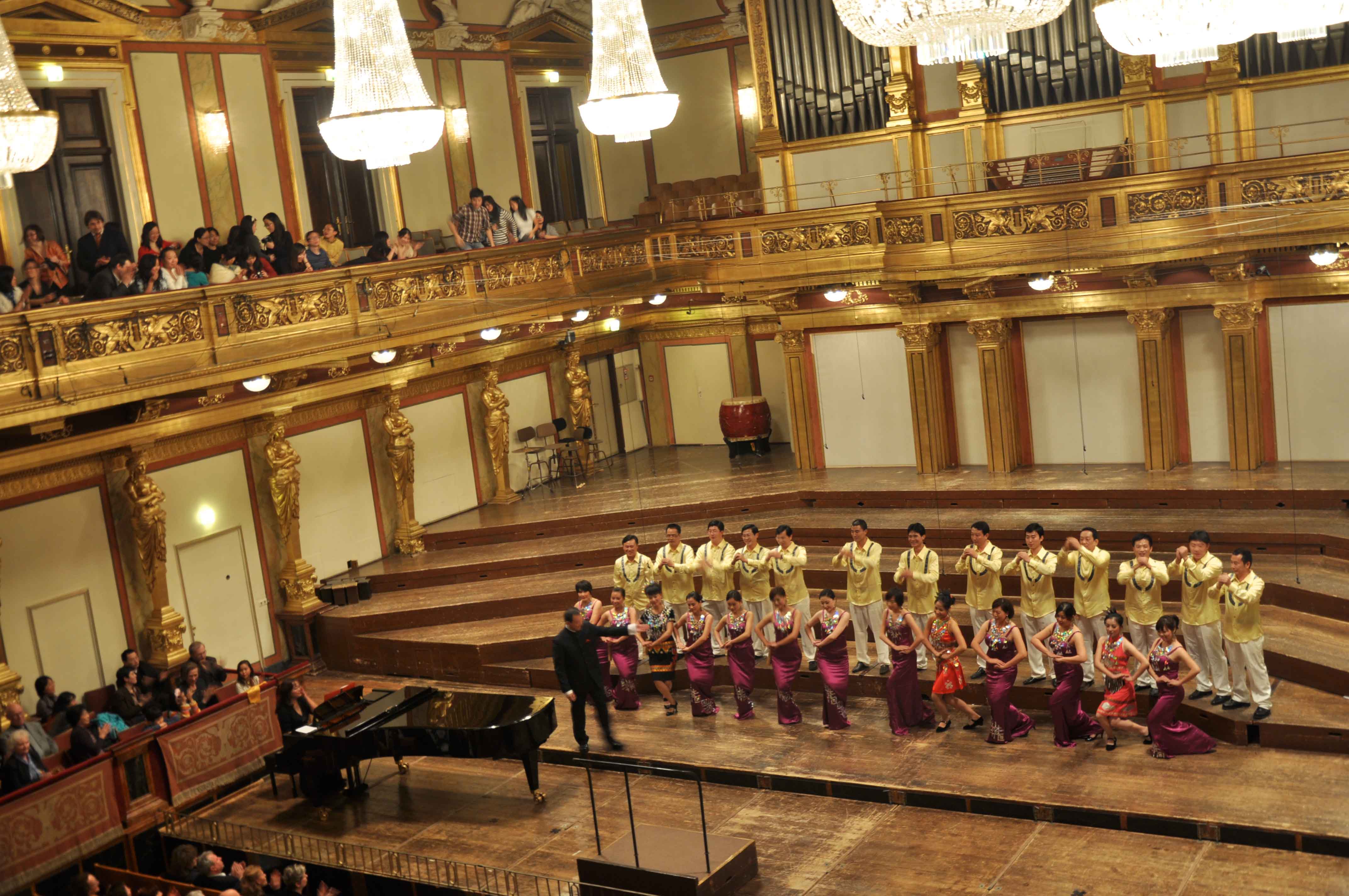 本次“中奧建交40周年金色大廳慶典音樂會” 是由奧地利中國關(guān)系促進(jìn)會、世界音樂藝術(shù)教育發(fā)展協(xié)會聯(lián)袂主辦的,獲中國駐奧地利大使館、奧地利駐中國大使館、維也納市政府及中國中央電視臺支持,是為慶祝中奧建交40周年而舉辦的,藉著中國源遠(yuǎn)流長的文化蘊(yùn)含,融合奧地利悠久古老的音樂精神,促進(jìn)中奧兩國間文化領(lǐng)域更深層次、更廣泛的交流,彰顯中奧兩國人民友誼之樹長青的良好狀態(tài)和美好希冀。